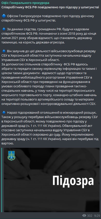 Об этом говорится в сообщении, опубликованном в тг-канале СБУ.