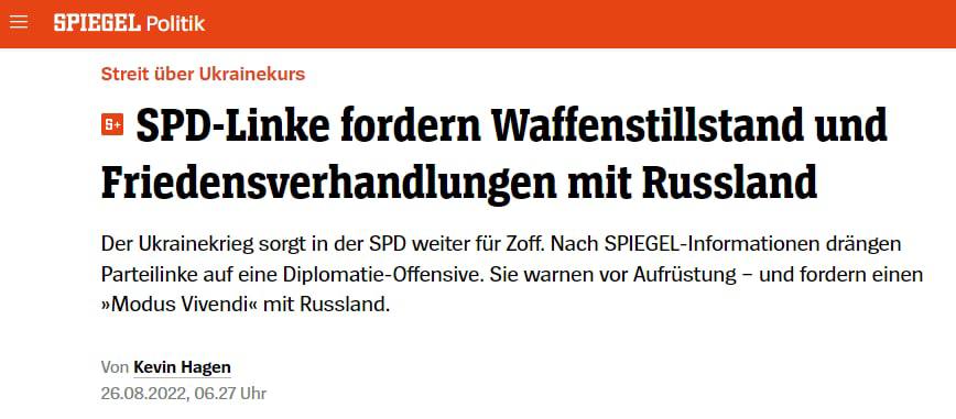 12.20 В левом крыле Социал-демократической партии Германии (лидером этой партии является канцлер Шольц), призвали прекратить поставки Украине тяжелого вооружения и выступить за мирные переговоры с Россией.
