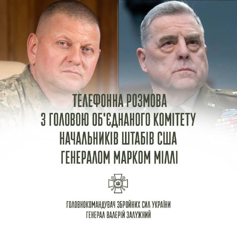 20:39 Главком ВСУ Валерий Залужный сообщил о новом телефонном разговоре с председателем объединенного комитета начальников штабов США генералом Марком Милли.