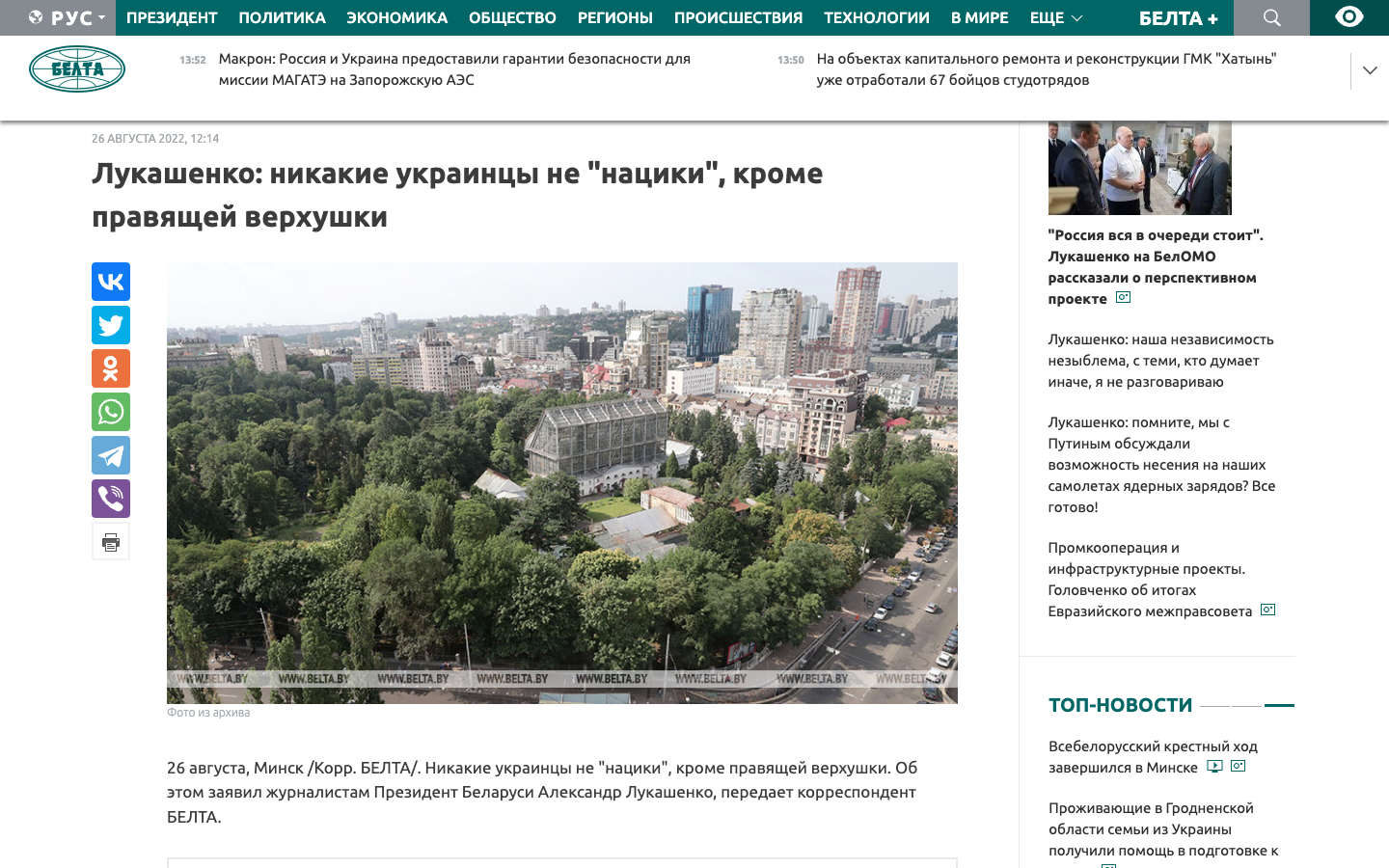 "Лично у меня сложилось очень хорошее и доброе отношение к украинцам. Будь то западные - западенцы, как их называют. Ничего в них плохого нет. Никакие они не "нацики". "Нацики" - это те, кто сверху, начиная от тех, кто курит, нюхает, пьет и потом вякает с экранов телевизоров. А люди хорошие. Это наши люди. Поэтому я счел необходимым, как всегда, поздравить украинский народ (с Днем Независимости - Ред.)", - заявил Лукашенко.
