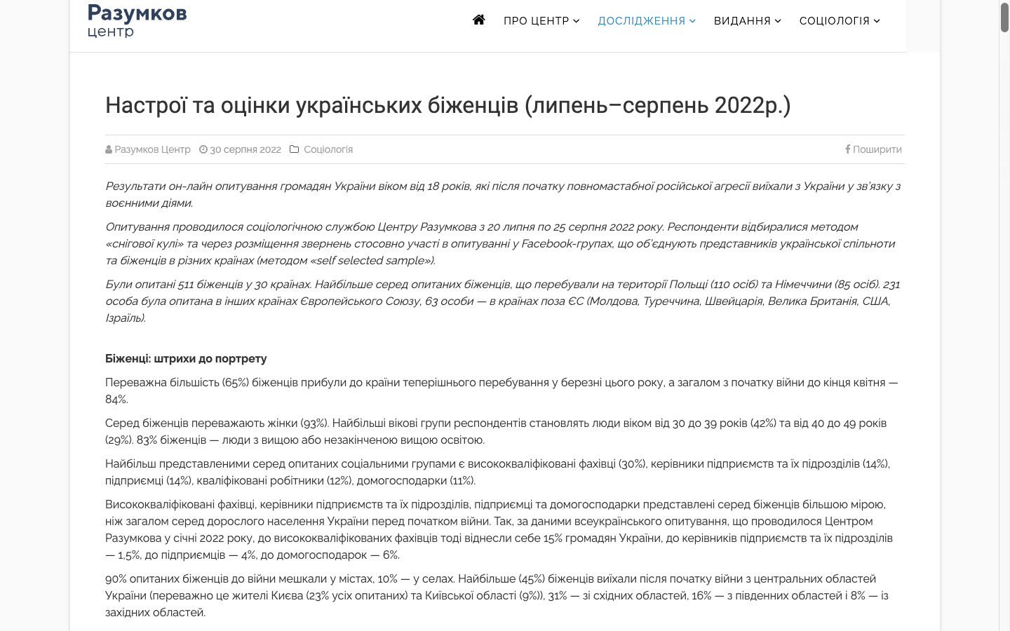 91% украинских беженцев задумываются о возращении на родину. Половина - лишь после окончания войны