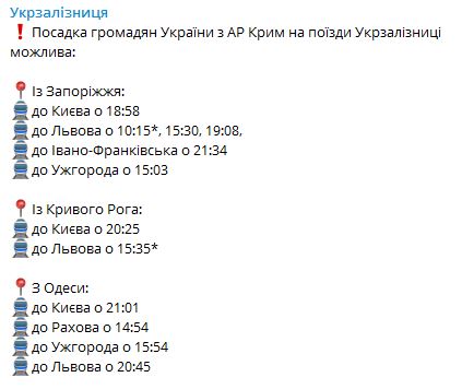Укрзализныця запускает программу эвакуационных поездов для украинцев, которые хотят выехать из Крыма