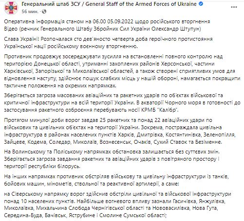 В понедельник. 5 сентября, Генштаб ВСУ обнародовал утреннюю сводку о ситуации на фронте.