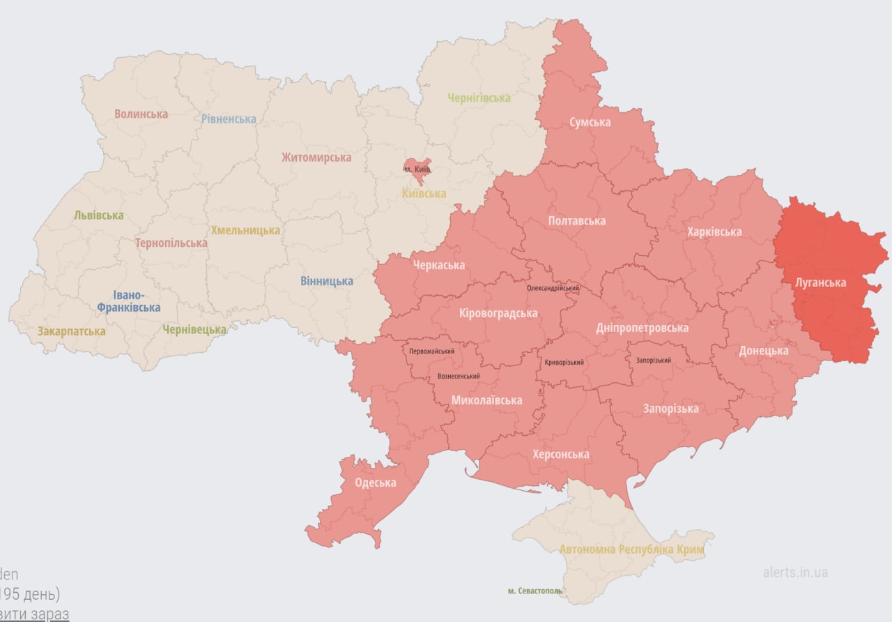 07.35 В Киеве и примерно половине регионов - воздушная тревога.
