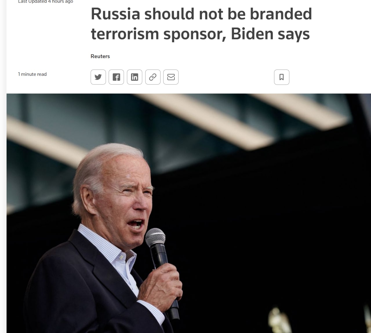 07.30 Байден заявил, что Россию нельзя признавать страной-спонсором терроризма.