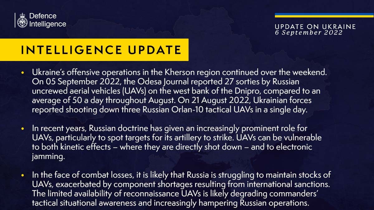09.11 Британская разведка считает, что у России по-прежнему проблемы с беспилотниками.