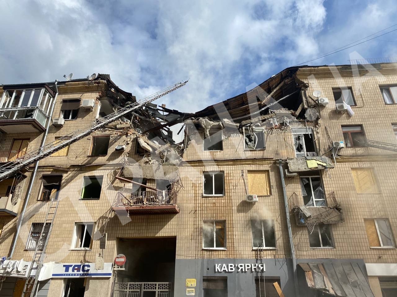 10.35 Фото прилета в центре Харькова Ракета попала в пятиэтажный жилой дом в центре города.