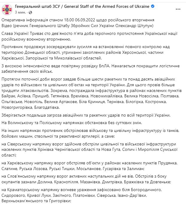 Во вторник, 6 сентября, в Украине идет уже 195-й день войны с Россией.