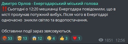 Об этом сообщает энергодарский городской глава Дмитрий Орлов.