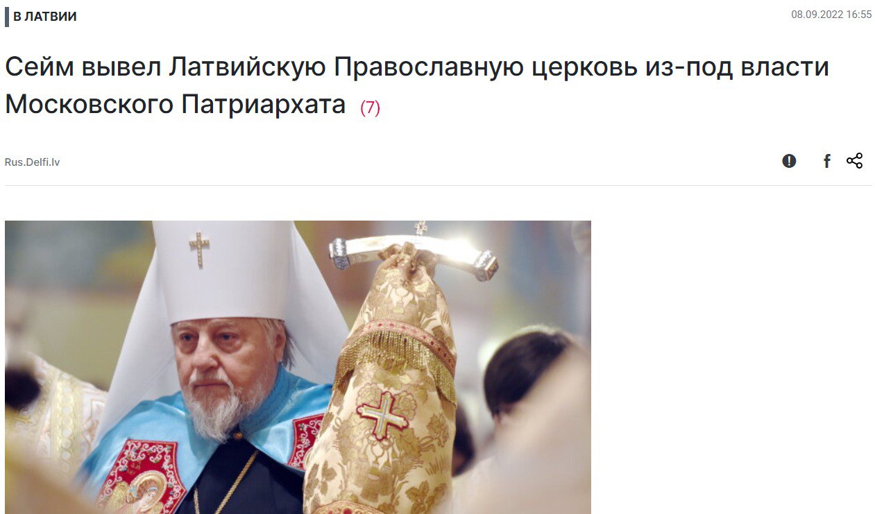 Сейм Латвии принял закон о выводе Латвийской Православной церкви из-под власти Московского патриархата.