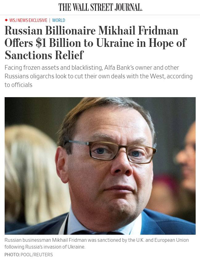 Российский бизнесмен Михаил Фридман предлагает перевести один миллиард долларов своего личного состояния в украинский банк, соучредителем которого он является, чтобы убедить Великобританию снять с него санкции.