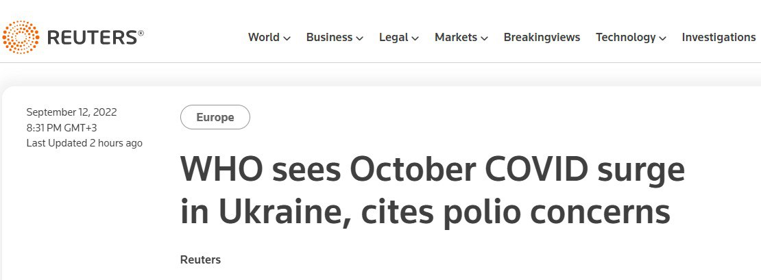 В ВОЗ прогнозируют пик заражений коронавирусом в Украине уже на октябрь - Reuters