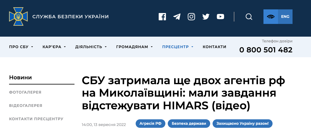 СБУ сообщила о задержании агентов РФ. Один "охотился" за HIMARS, другой "воевал" в интернете. Фото