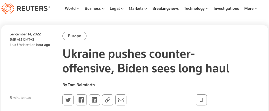 Президент США Джо Байден, комментируя успешное контрнаступление ВСУ под Харьковом, заявил, что "украинцы добились значительного прогресса", однако "предстоит еще долгий путь".