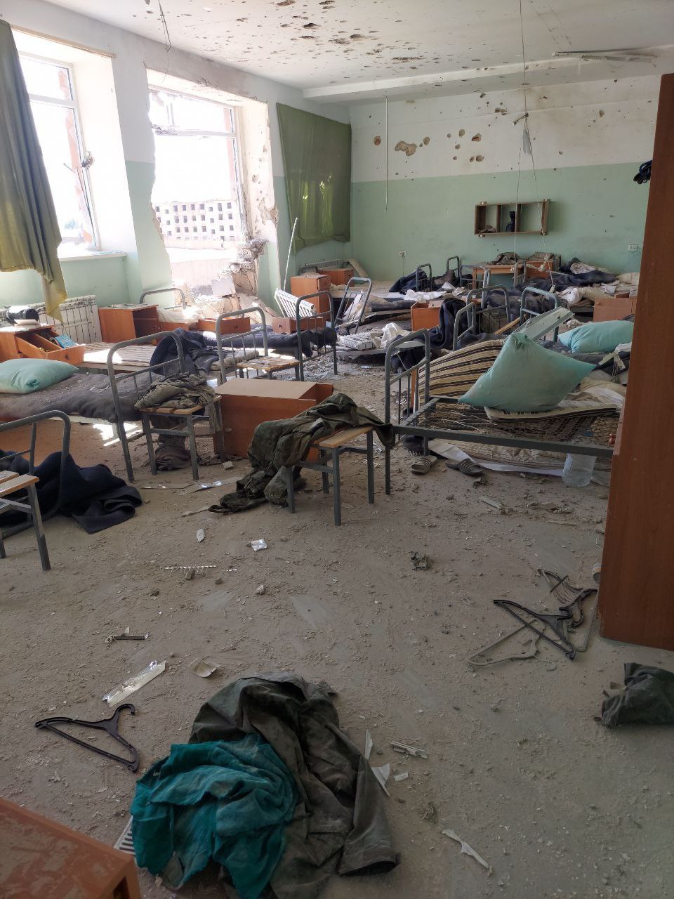 СМИ Армении публикуют фото разгромленного пункта дислокации пограничных сил ФСБ России в Гегаркунике, который, как сообщается, был разбит вооруженными силами Азербайджана.