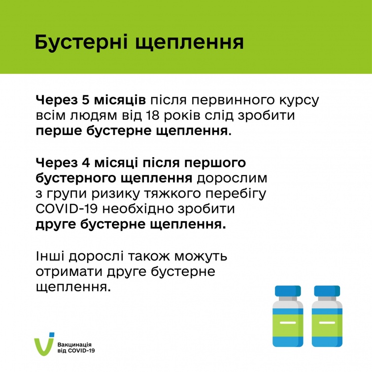 Также в Украине снизили минимальный срок вакцинации между базовым курсом и первым бустером с 6 до 5 месяцев.