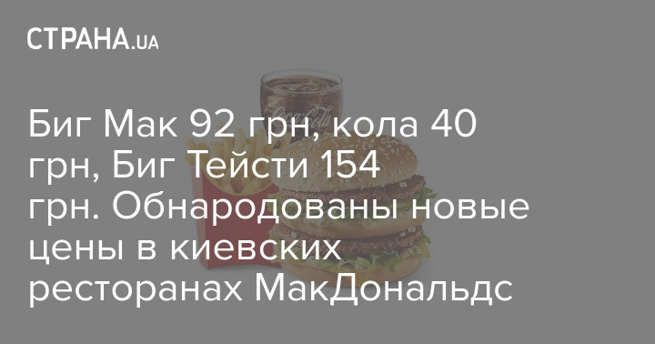 Биг Мак 92 грн, кола 40 грн, Биг Тейсти 154 грн. Обнародованы новые цены в киевских ресторанах МакДональдс