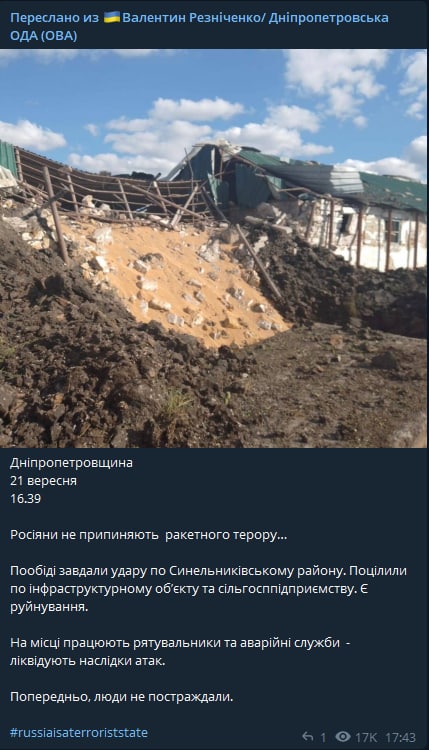Напомним, российские войска сегодня, 21 сентября, нанесли ракетный удар по городу Запорожье.