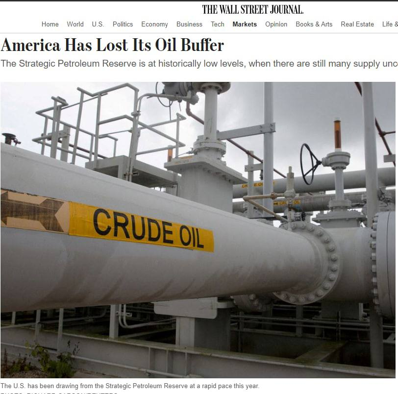 Об этом пишет The Wall Street Journal, предупреждая: снижение запаса является угрозой для США в связи с нестабильностью топливных рынков.