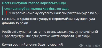 22:28 Россияне ударили по аэропорту Кривого Рога ракетой Х-59, сообщает глава Днепропетровской ОВА Валентин Резниченко.