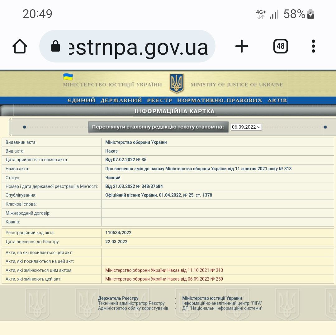 "Прилагаю скрин карточки регистрации в Едином госреестре нормативно-правовых актов и скрин той части указа из этого реестра, которая вас волнует", – написал он.
