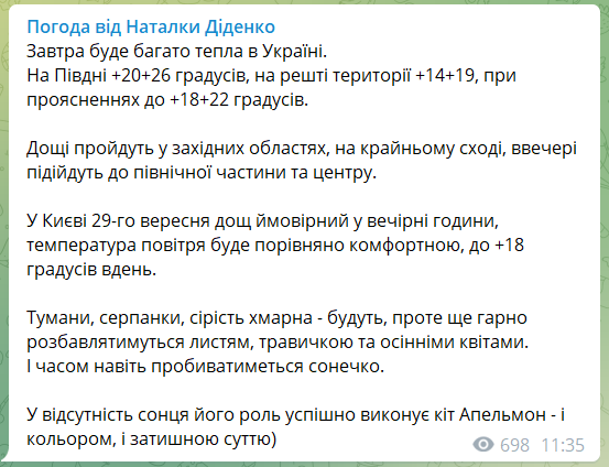 Много тепла, туманы и вечерний дождь в столице. Синоптик рассказала о погоде в Украине 29 сентября