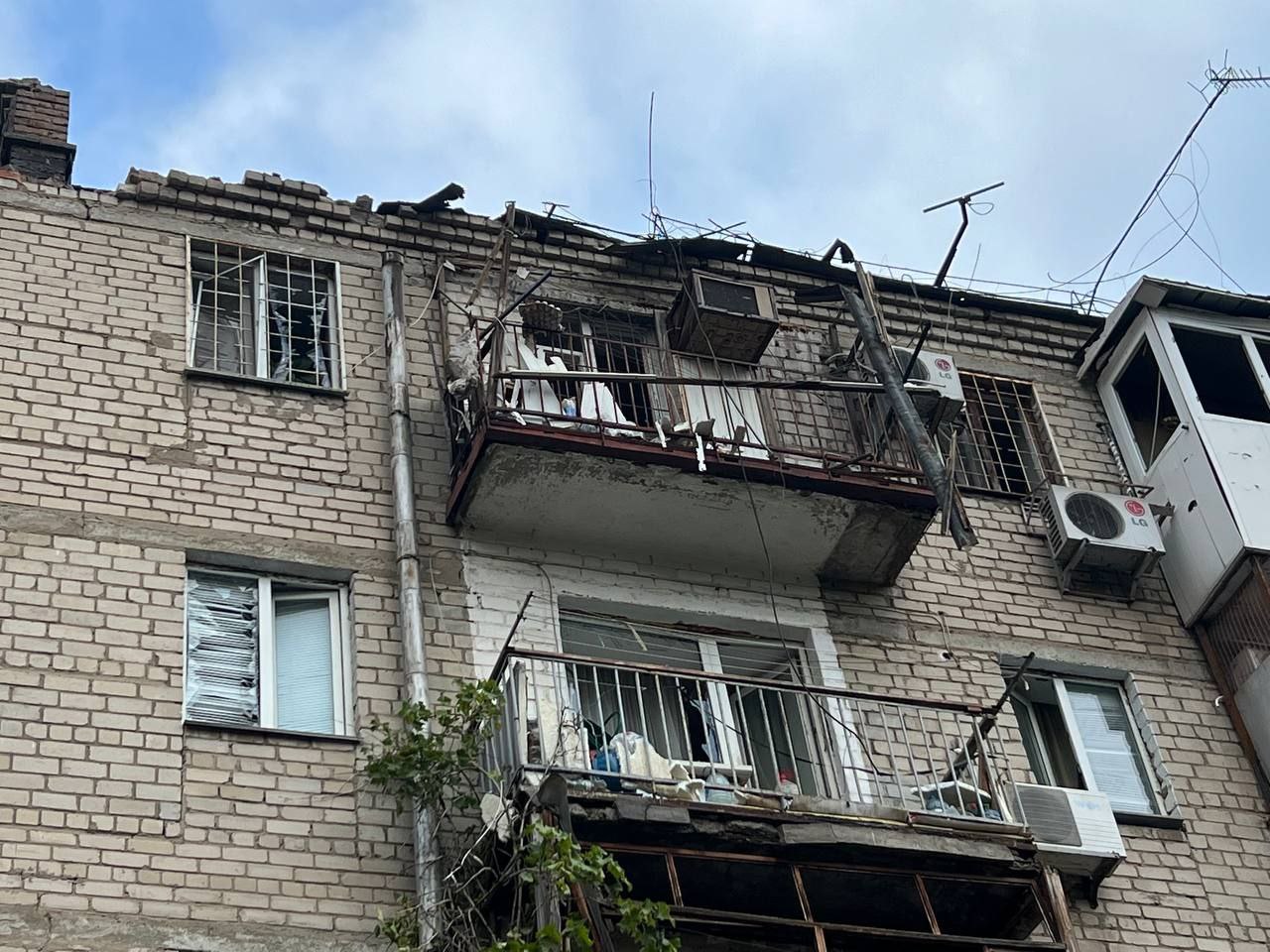 В другом районе города серьезно повреждены частные и двухэтажный жилой дом. Также пострадал склад и здания на территории автотранспортного предприятия.