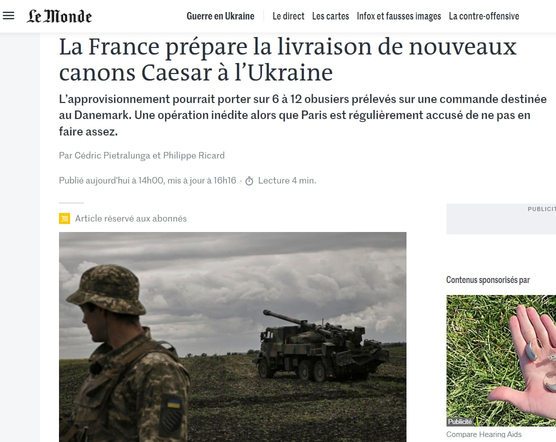 Франция готова передать Украине значительную часть из запрошенных 15 артиллерийских самоходных установок Caesar - от 6 до 12 единиц.