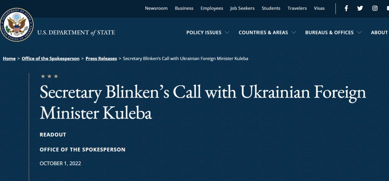 Эту позицию он еще раз обозначил в телефонном разговоре с министром иностранных дел Дмитрием Кулебой, распечатка которого доступна на сайте Госдепартамента США.