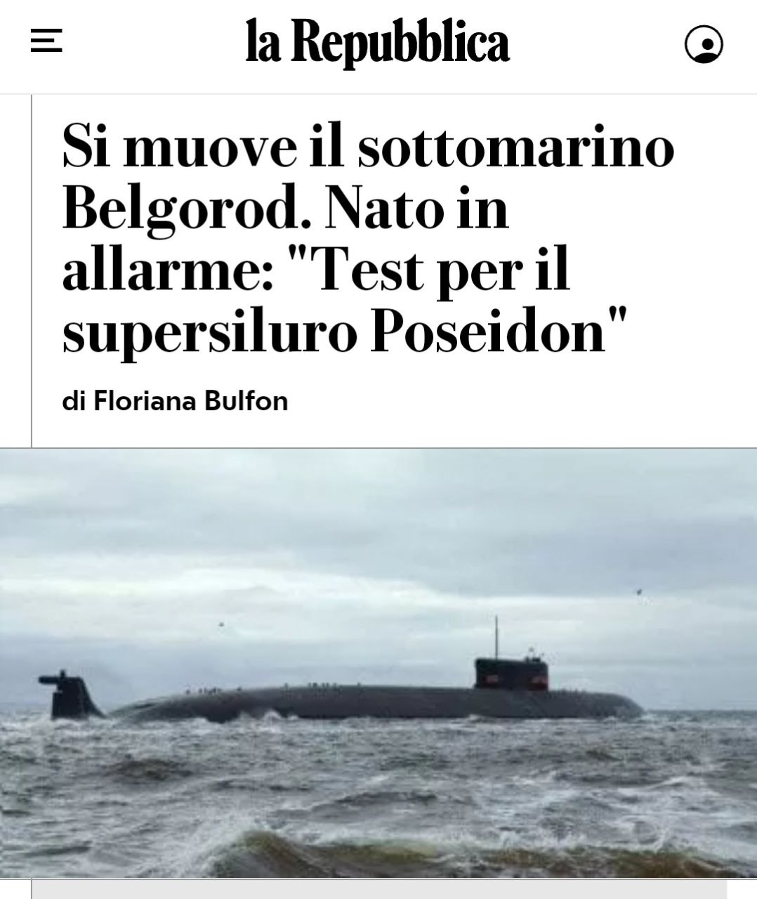 Подлодка вышла на испытания в Белом море, сообщает источник итальянской газеты La Repubblica.