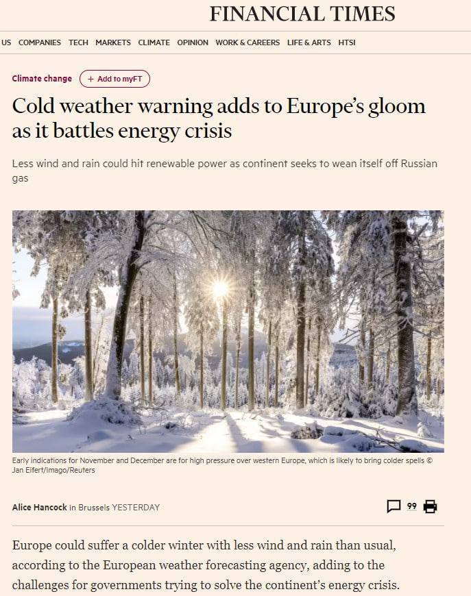 «Из-за войны на Украине и нехватки газа в Европе существует значительный риск возникновения нехватки газа зимой 2022/23 года в Великобритании. В результате существует вероятность того, что Великобритания может столкнуться с чрезвычайной ситуацией с подачей газа», — говорится в письме Ofgem.