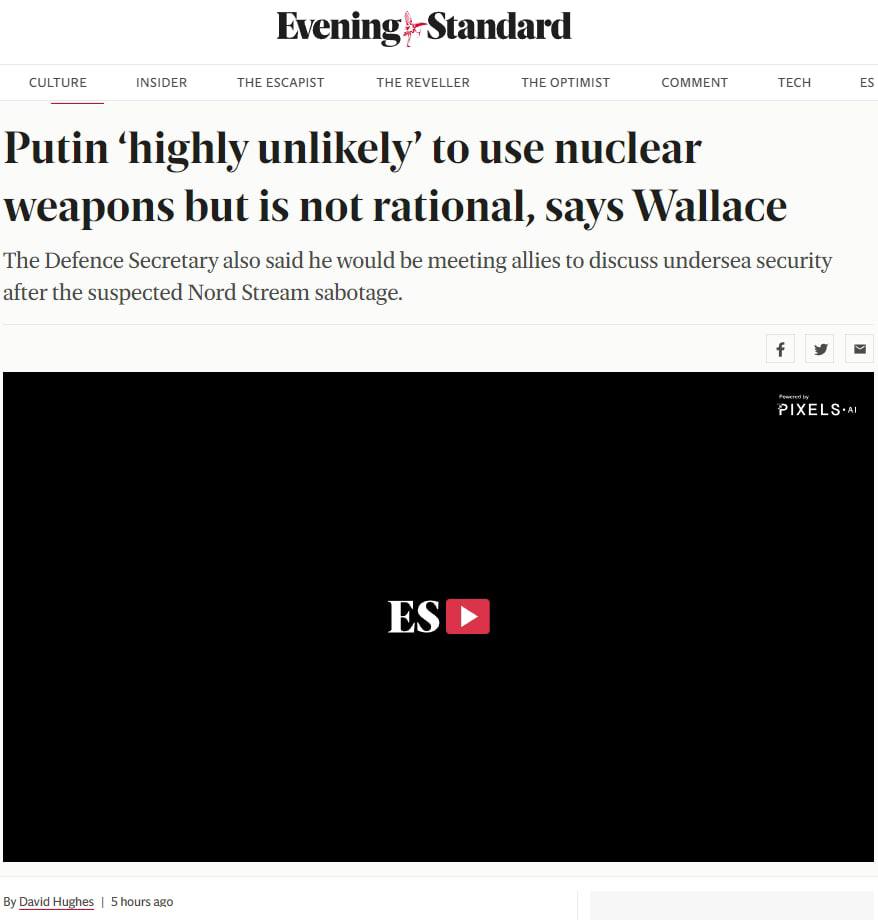 По его словам, использование Россией ядерного оружия в Украине не приведет к срабатыванию статьи 5 НАТО о коллективной обороне, т.к. Украина не член альянса, однако "ответ США и НАТО", по его мнению был бы уместен.