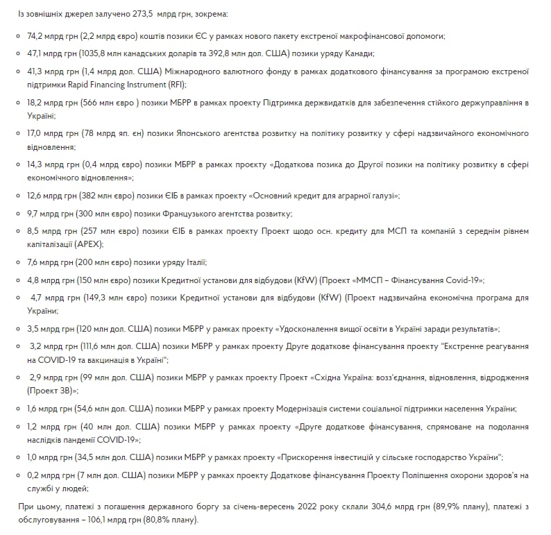Также уменьшился объем международной помощи. В сентябре он составил 72,5 млрд грн, тогда как в августе Украина получила 109,7 млрд гривен международной помощи.