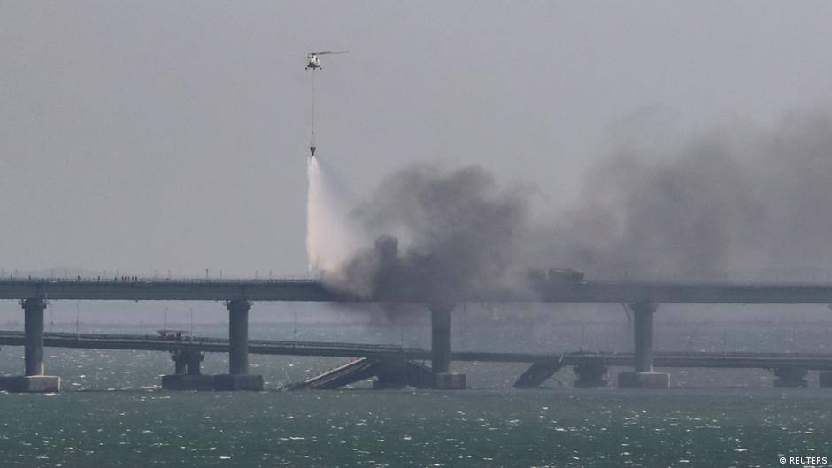 На украинский след уже указал "глава парламента" Крыма Константинов, который предположил, что мост взорвали "украинские вандалы".