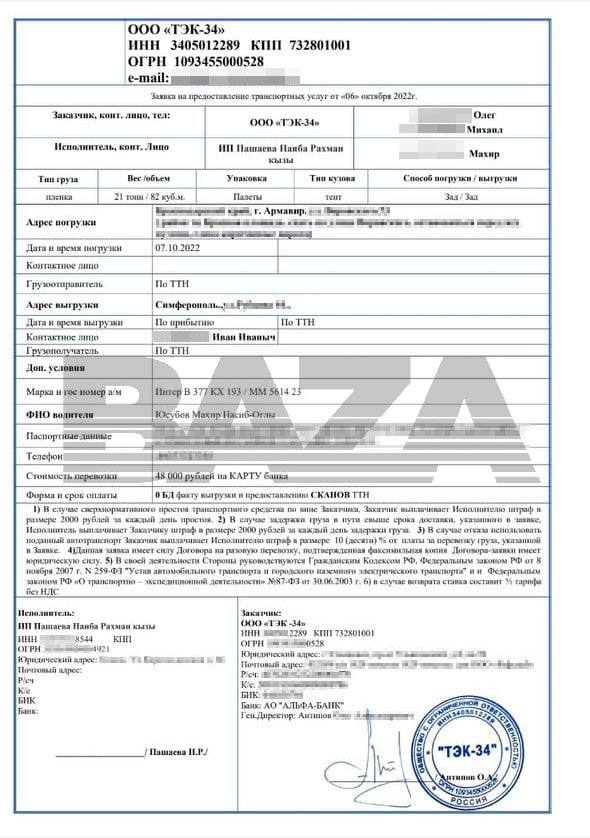 6 октября некто, подписавшейся Олегом, около 14:00 разместил с аккаунта "ТЭК-34" заявку на транспортировку груза на рейсе Армавир-Симферополь. Причем установлено, что публиковалось объявление с IP-адреса в Москве.