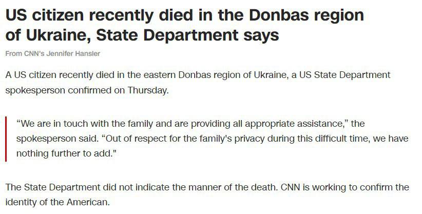 На востоке Украины погиб гражданин США. Об этом сообщил официальный представитель Госдепартамента, сообщает CNN.