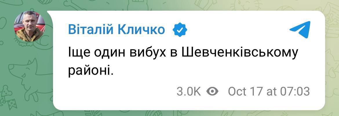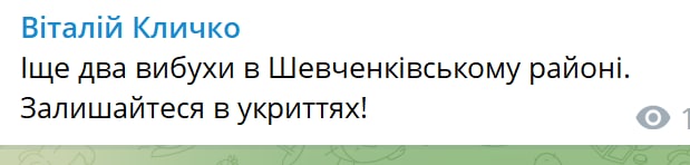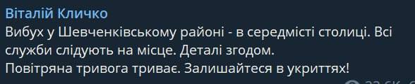 07:11 Кличко подтверждает ещё один прилет в Киеве в Шевченковском районе.