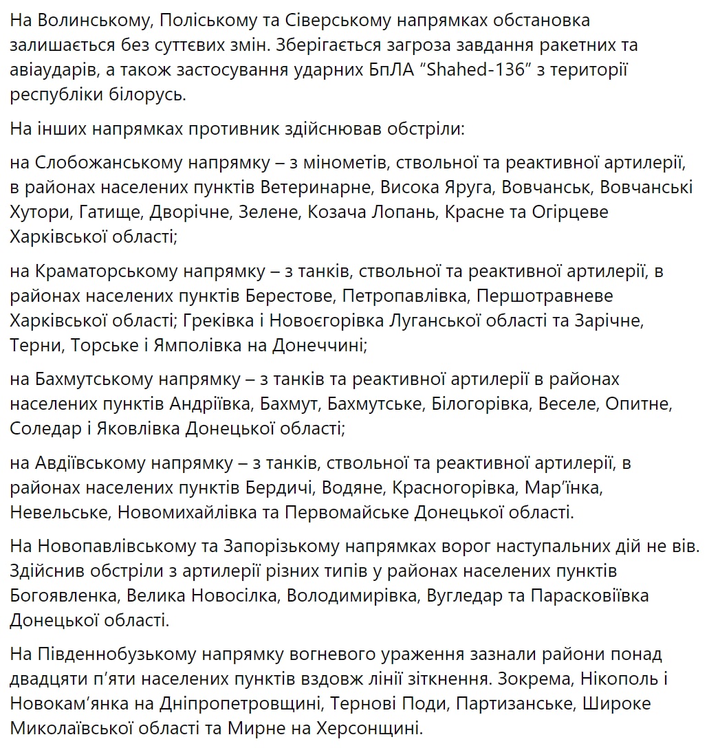 1. Противник пытается наступать в Бахмутском и Авдеевском направлениях.