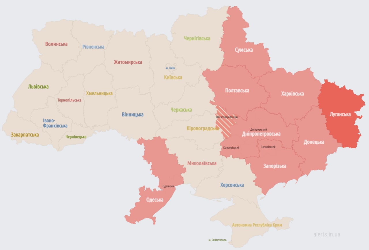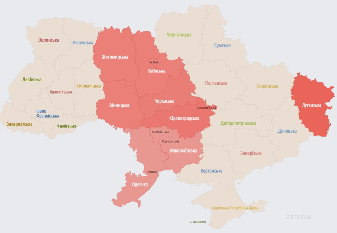 08:13 Воздушную тревогу объявили и в южных регионах. При этом в Киеве и области она продолжается.