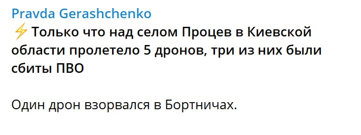 Один беспилотник взорвался в Бортничах.