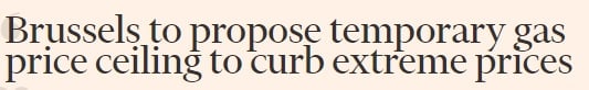 09:57 Евросоюз предложит временный потолок цен на весь импортируемый газ (то есть, не только российский) "чтобы обуздать экстремальные цены", пишет Financial Times