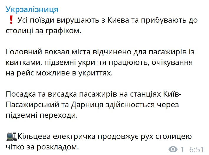 В "Укрзализныце" после прилетов в Киеве сообщается, что поезда в столицу приходят по расписанию.