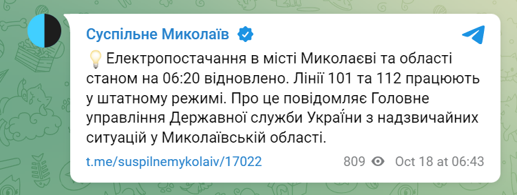 В ночь с 17 на 18 октября в Николаеве прогремели взрывы. В городе из-за этого исчезало электричество.