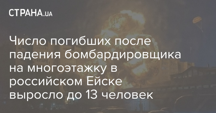 Число погибших после падения бомбардировщика на многоэтажку в российском Ейске выросло до 13 человек