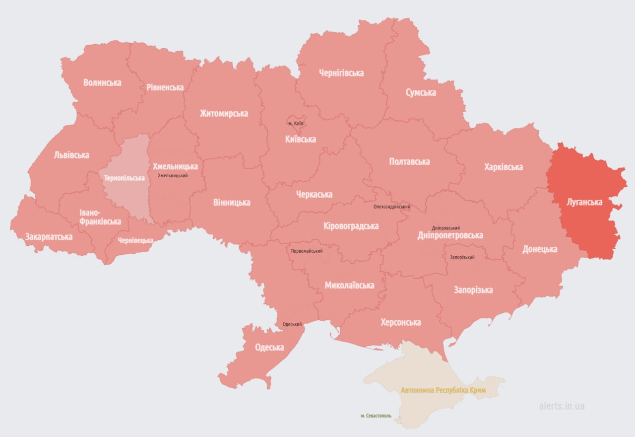 10:11 Воздушная тревога по всей территории Украины (кроме Крыма).