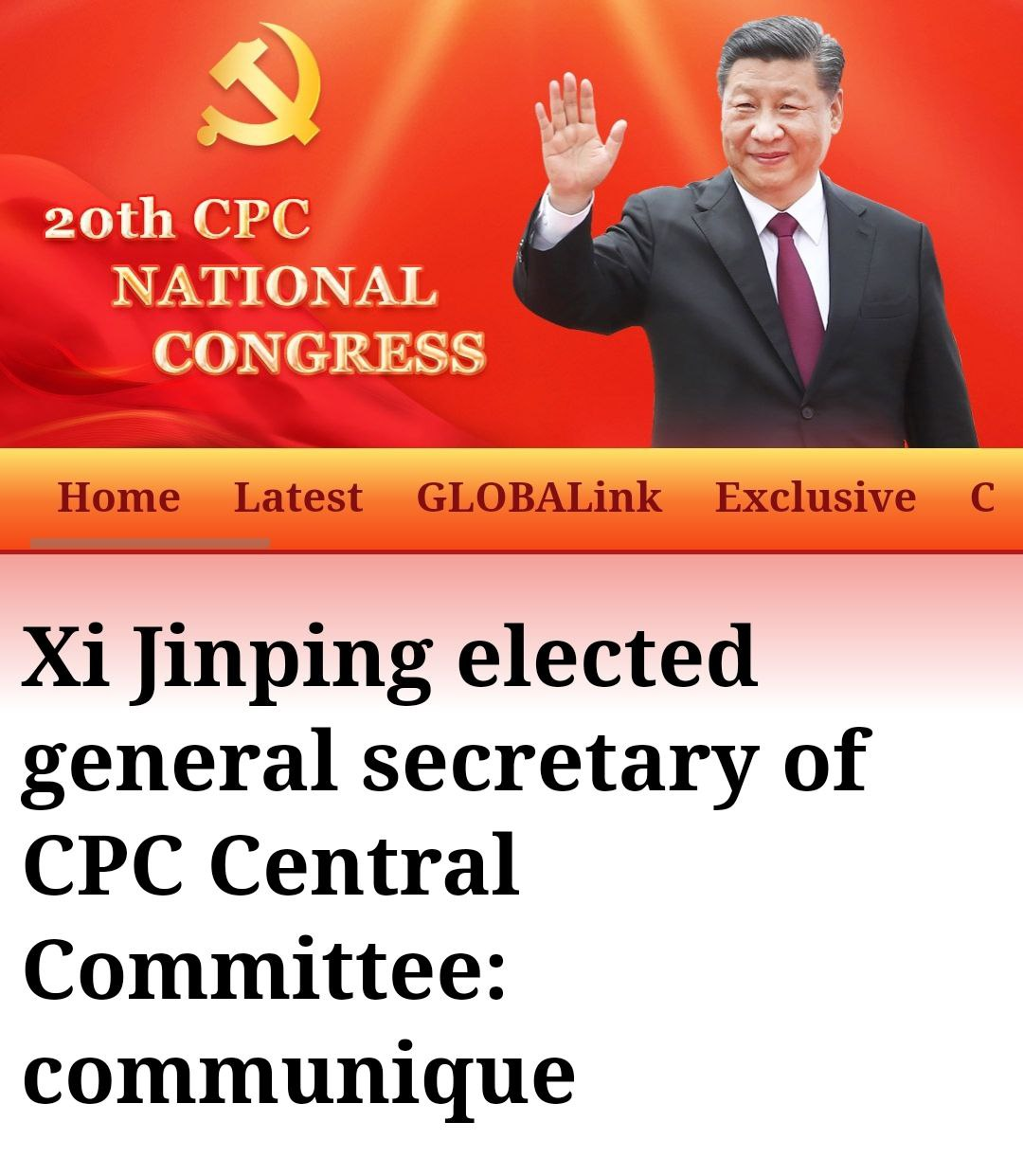 Центральный комитет Коммунистической партии Китая (ЦК КПК) 20-го созыва переизбрал Си Цзиньпина генеральным секретарем ЦК КПК на третий срок. Си Цзиньпин также в третий раз подряд занял должность председателя Военного совета ЦК КПК.