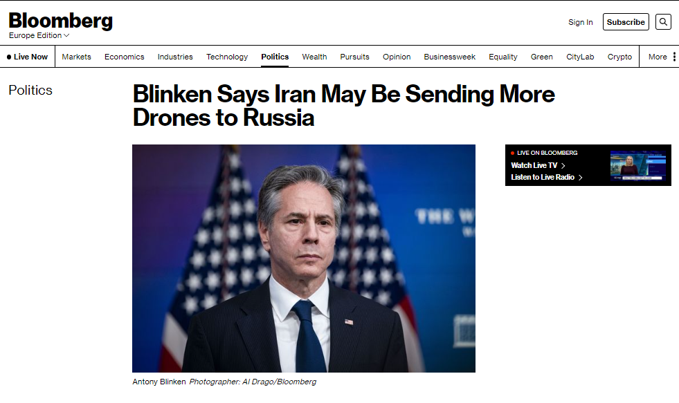 "Мы считаем, что Россия получила десятки этих БПЛА из Ирана, и, возможно, в разработке есть еще больше", - сказал Блинкен.