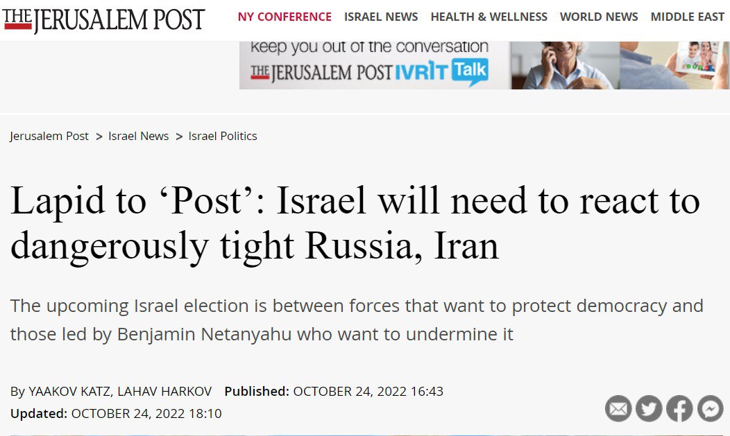 «Россия играет важную роль в нашем регионе не первый год, особенно после 2015-го года, когда появился российский контингент практически на наших границах в Сирии. Израиль обязан считаться с этим фактором в ближневосточной политике.