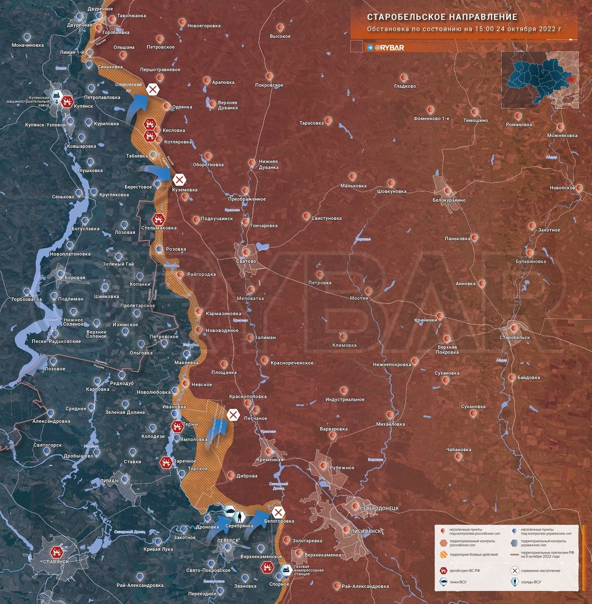 По поводу населенных пунктов, об освобождении которых заявлял Генштаб ВСУ, россияне их не упоминают, но, судя по картам российских военных телеграмм-каналов, они находятся около линии фронта. То есть в целом, речь идет о разворачивающихся боях за трассу Сватово-Кременная, в направлении которой намерены развивать наступление ВСУ. Судя по всему, здесь началась активизация боевых действий.