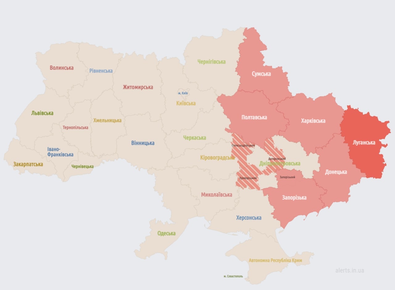 09.55 В восточных регионах Украины звучит воздушная тревога.